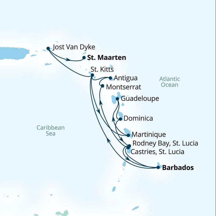 Saint Lucia is the quintessential island paradise, with the majestic peaks of the Pitons, the splendour of lush rainforests, and the blue-green waters of the Caribbean breaking just off shore. Here, the mix of Caribbean, African, English, and French cultures creates an exquisite blend of food, music, and traditions. Enjoy a leisurely morning visiting Sulphur Springs, the world's only drive-in volcano, where you can relax in therapeutic mud baths and hot springs. For a taste of local culture, head to Castries Market, bustling with vendors selling fresh produce, spices, and handmade crafts.