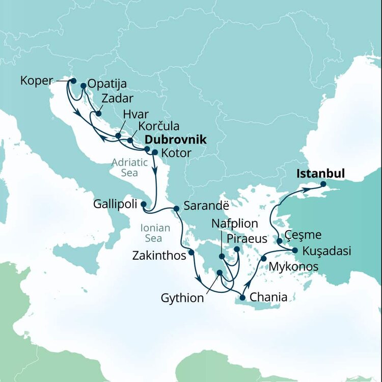 Once the seat of two massive empires, Istanbul has been shaped by its colourful history. From massive Byzantine churches, to towering Ottoman mosques, history can be found in each building no matter what part of the city you wander through. Ships will dock at the Galataport cruise ship terminal which is a 40 minute drive from the Istanbul Airport.