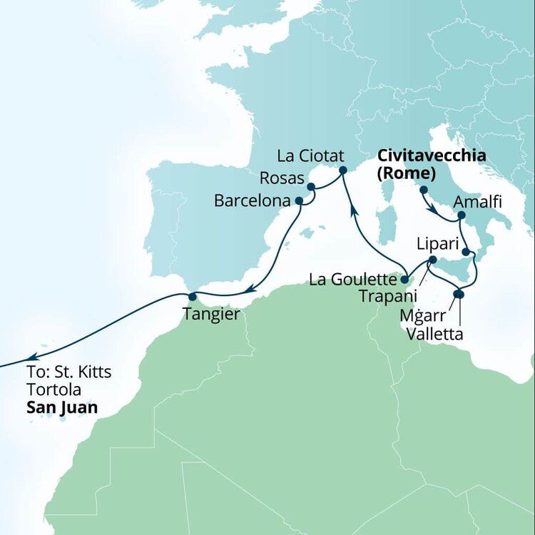 Perched on a low-lying, palazzi-dotted promontory on Sicily's west coast, Trapani reveals a hint of its medieval past in its historic core's maze of narrow streets. Surrounded by glowing turquoise waters and rugged coastline, it is the gateway to western Sicily's ruins. Ships will dock at Porto di Trapani.