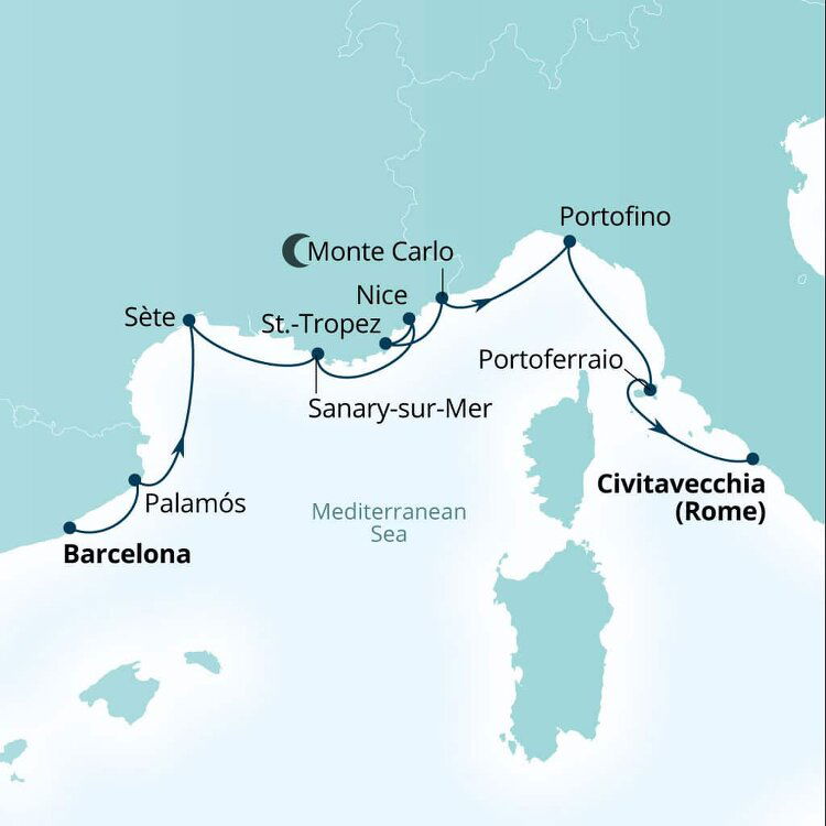 A glitzy, glamorous coastal resort, Saint Tropez is the French Riviera hotspot of choice for A-listers and flotillas of gleaming yachts. While spectacular white sand beaches line the Gulf de Saint-Tropez, the Provencal countryside rises up behind the town with medieval villages, vineyards and lavender fields. Ships will anchor offshore and tender guests to shore.