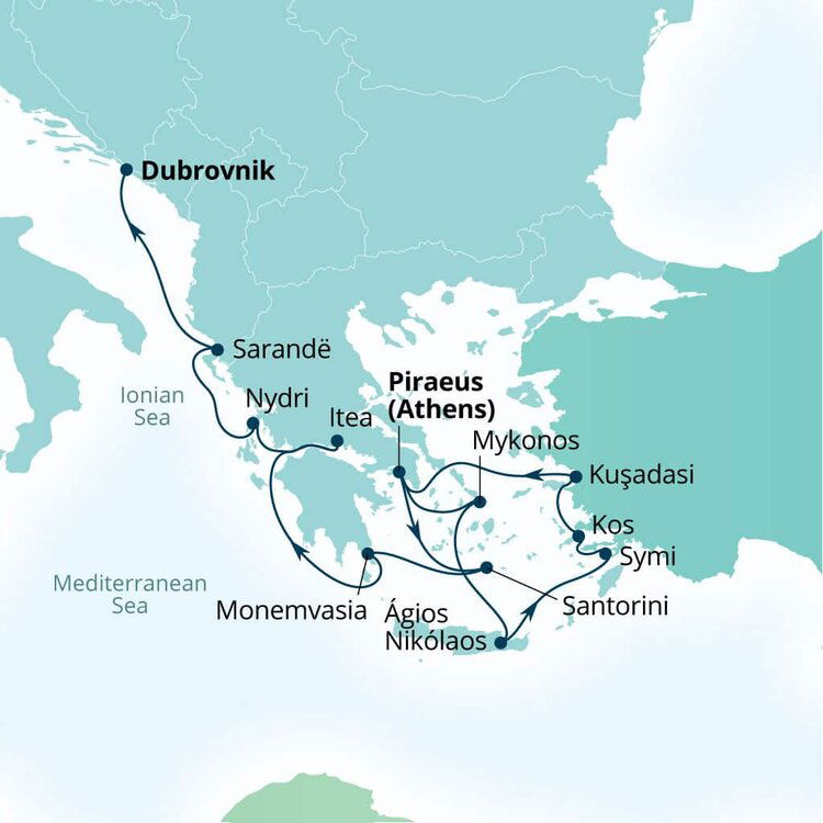 Set on the east of the Greek island Crete, Agios Nikolaos seamlessly blends the charm of a small fishing village with the glamour of a chic resort town. Pastel-coloured houses surround the towns pretty harbour and inky lake, while busy restaurants and cafes spill out onto its lively waterfront. Ships will dock at this port.