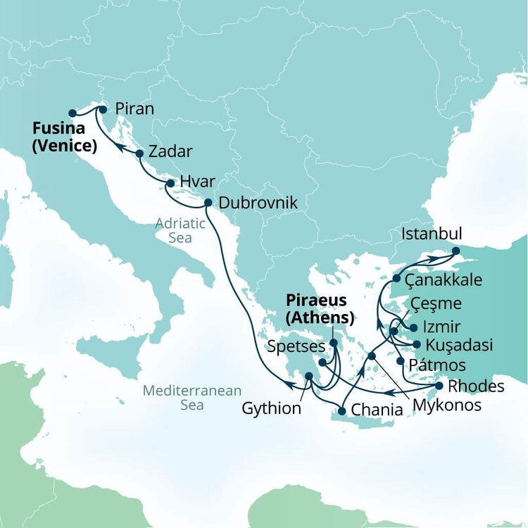 Cruise into Cesme, a charming coastal town on the Aegean Sea. The port is conveniently located near the city's centre, and within walking distance, cruisers will find a range of amenities, including shops, cafes, and local markets.