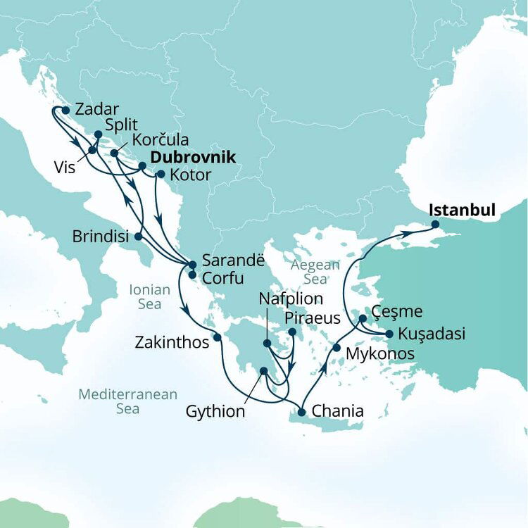 Overlooking the turquoise blue Ionian Sea, Albania’s most southerly harbour bathes in the glow of more than 300 sunny days each year. This seaside resort is celebrated for its lush natural habitat, dazzling displays of mosaics and artefacts, and historical sites such as the ruins of Onchesmos. Ships will anchor offshore and tender guests to the pier.
