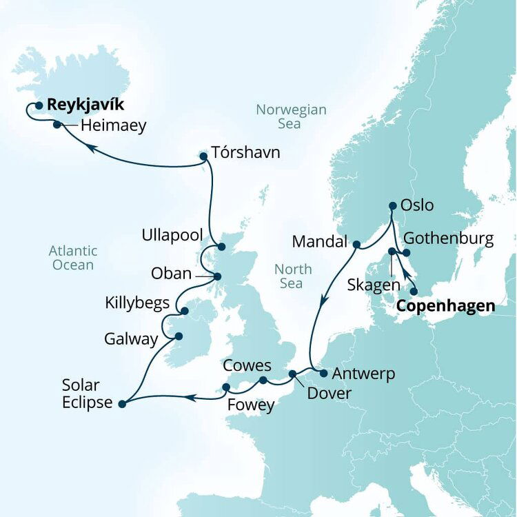 Located in the chilly and wild North Atlantic, it is common to see whales and seals in the surrounding waters. Puffins are also a common sight in summer, as the islands are considered as the largest Atlantic puffin colony in the world. Ships will dock in the main harbour.