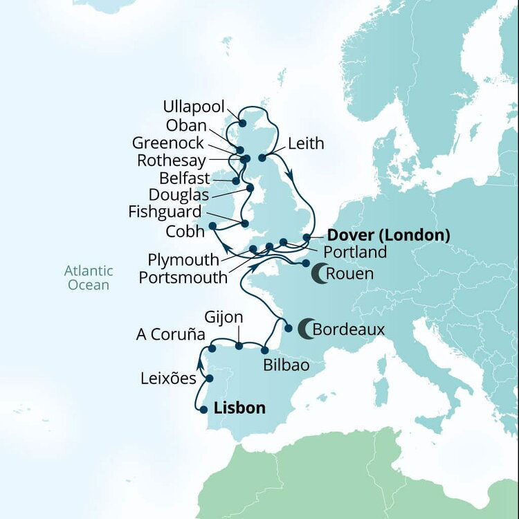 Known as the 'Gateway to England', the southeastern town of Dover is the main transit port between the two sides of the English Channel. This quaint and uniquely British town is famous for its impressive white cliffs, which have inspired many a poet and playwright. Ships will dock at the Dover Cruise Terminal.
