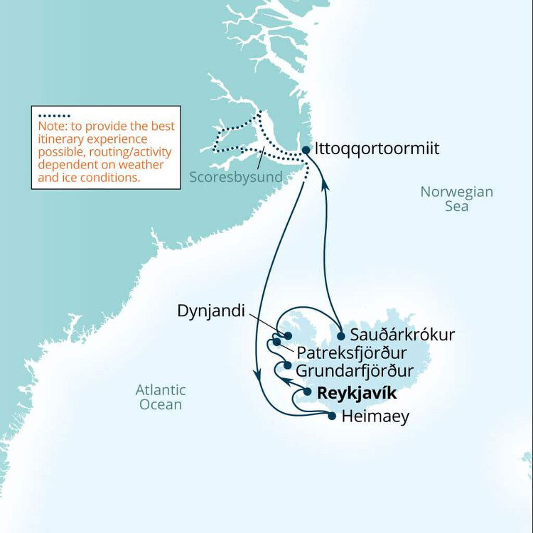 Grundarfjordur is a picturesque town situated on the fjord of Beidafjordur on the Snaefellsnes Peninsula. This charming fishing village is located right next to Kirkjufell mountain, the most photographed mountain in Iceland. Ships will dock at the Port of Grundarfjordur.