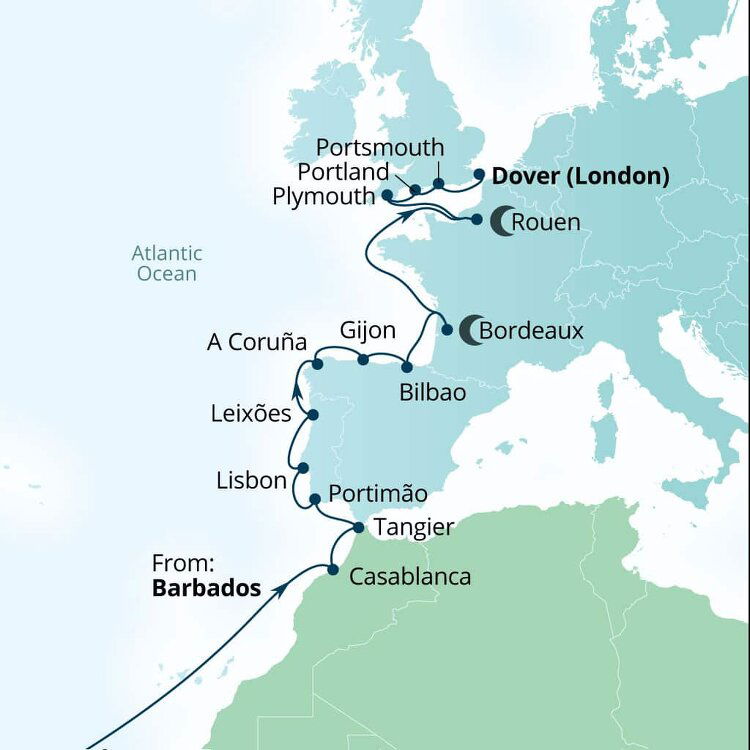 Known as the 'Gateway to England', the southeastern town of Dover is the main transit port between the two sides of the English Channel. This quaint and uniquely British town is famous for its impressive white cliffs, which have inspired many a poet and playwright. Ships will dock at the Dover Cruise Terminal.