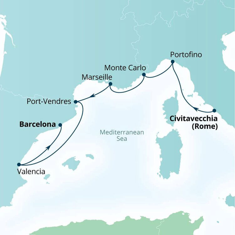 Port-Vendres, located on the picturesque Côte Vermeille near the Spanish border, is a convenient entry point for exploring the charming town of Collioure. The port itself is small but functional, offering easy access (by tender) to this historic region. From here, it's a short journey to Collioure, renowned for its vibrant Catalan culture and stunning scenery that inspired artists like Derain and Picasso.