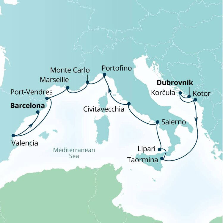 Port-Vendres, located on the picturesque Côte Vermeille near the Spanish border, is a convenient entry point for exploring the charming town of Collioure. The port itself is small but functional, offering easy access (by tender) to this historic region. From here, it's a short journey to Collioure, renowned for its vibrant Catalan culture and stunning scenery that inspired artists like Derain and Picasso.