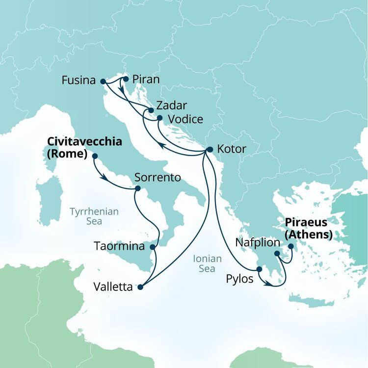 Sorrento's colourful, sun-faded facades cascade down from green hills and cliffs to the Bay of Naples. Looking out from Sorrento, in the Gulf of Naples, is the isle of Capri. Well known for its sparkling Blue Grotto and as the playground of the rich and famous. Ships will anchor offshore and tenders will be provided to the marina.