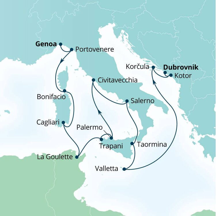 Perched on a low-lying, palazzi-dotted promontory on Sicily's west coast, Trapani reveals a hint of its medieval past in its historic core's maze of narrow streets. Surrounded by glowing turquoise waters and rugged coastline, it is the gateway to western Sicily's ruins. Ships will dock at Porto di Trapani.