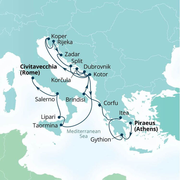 Welcome to the ancient city of Athens, the 'Cradle of Western Civilisation'. If your schedule is tight, savor traditional Greek coffee at a café with a view of the city's iconic ruins, soaking in the historic ambiance before your cruise departs. If you've got time to explore the Acropolis stands as a must-see, a UNESCO World Heritage site, adorned with iconic structures like the Parthenon and nearby Temple of Olympian Zeus. The nearby Acropolis Museum showcases stunning artifacts from ancient Greece, providing deeper insight into the city's heritage.