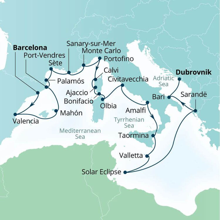 Located on the island of Corsica, Calvi is a beach town with a medieval past. Its cobbled streets climb up to an imposing Genoese Citadel which overlooks a sweeping bay of powdered white sand fringed by maritime pine trees. Ships will anchor offshore and tenders will be proved to Quai Landry.