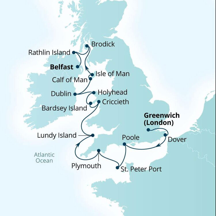 Northern Ireland's capital, Belfast, enjoys a wonderful setting of high hills, sea lough and river valley. Reborn as a cool, modern city, it has successfully left its troubles behind, emerging as a hotbed of culture and architecture, where the comfort of a cosy pub is never far away. Ships will dock in Belfast Harbour.