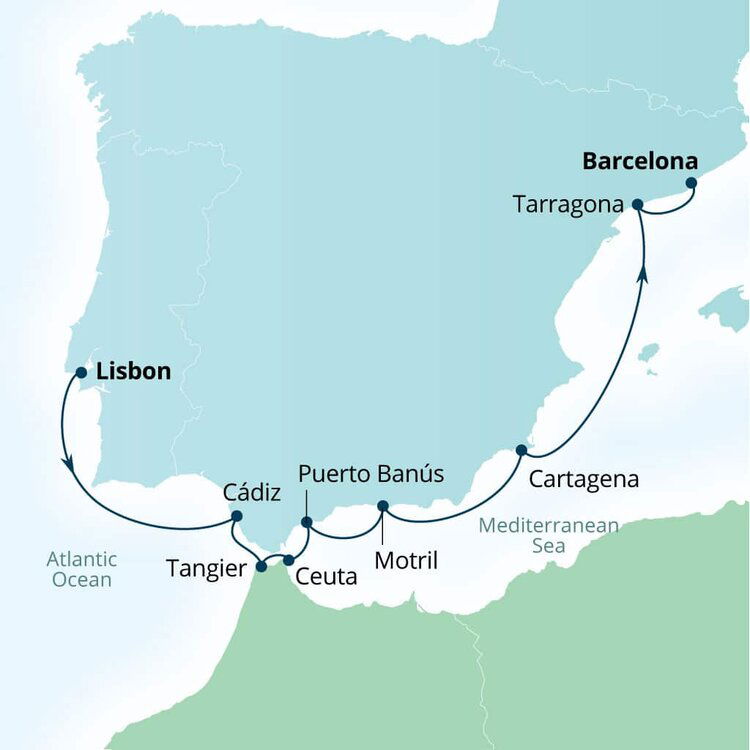 Your cruise finishes today in Barcelona, a captivating city on Spain's northeastern coast. If you're extending your stay in the city, start with a visit to La Sagrada Família, Antoni Gaudí's masterpiece, then wander through the narrow, historic streets of the Gothic Quarter.