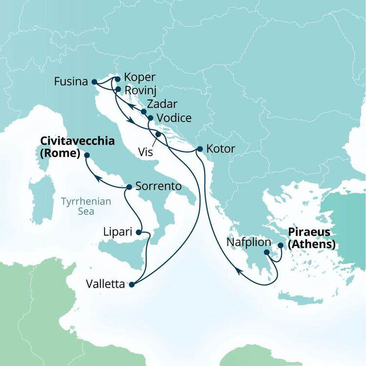 Welcome to the ancient city of Athens, the 'Cradle of Western Civilisation'. If your schedule is tight, savor traditional Greek coffee at a café with a view of the city's iconic ruins, soaking in the historic ambiance before your cruise departs. If you've got time to explore the Acropolis stands as a must-see, a UNESCO World Heritage site, adorned with iconic structures like the Parthenon and nearby Temple of Olympian Zeus. The nearby Acropolis Museum showcases stunning artifacts from ancient Greece, providing deeper insight into the city's heritage.