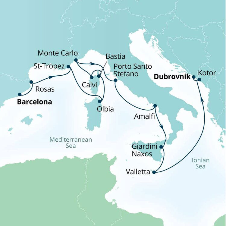 Located on the island of Corsica, Calvi is a beach town with a medieval past. Its cobbled streets climb up to an imposing Genoese Citadel which overlooks a sweeping bay of powdered white sand fringed by maritime pine trees. Ships will anchor offshore and tenders will be proved to Quai Landry.