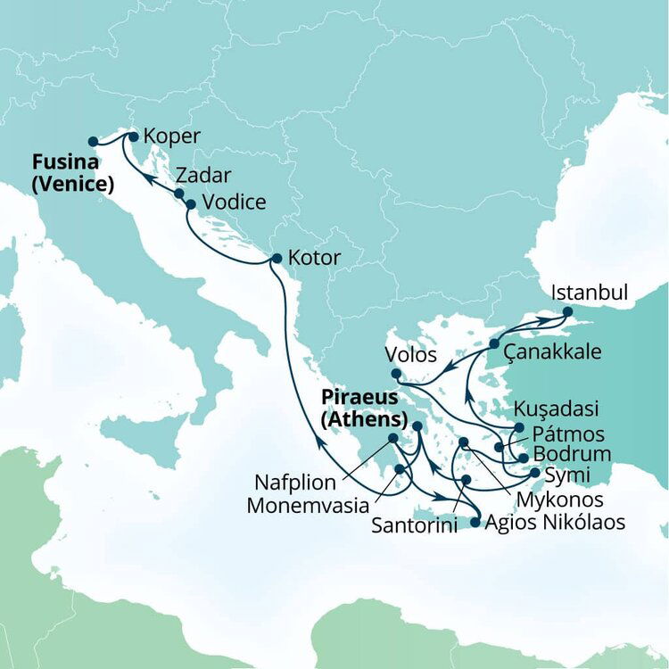 Welcome to the ancient city of Athens, the 'Cradle of Western Civilisation'. If your schedule is tight, savor traditional Greek coffee at a café with a view of the city's iconic ruins, soaking in the historic ambiance before your cruise departs. If you've got time to explore the Acropolis stands as a must-see, a UNESCO World Heritage site, adorned with iconic structures like the Parthenon and nearby Temple of Olympian Zeus. The nearby Acropolis Museum showcases stunning artifacts from ancient Greece, providing deeper insight into the city's heritage.