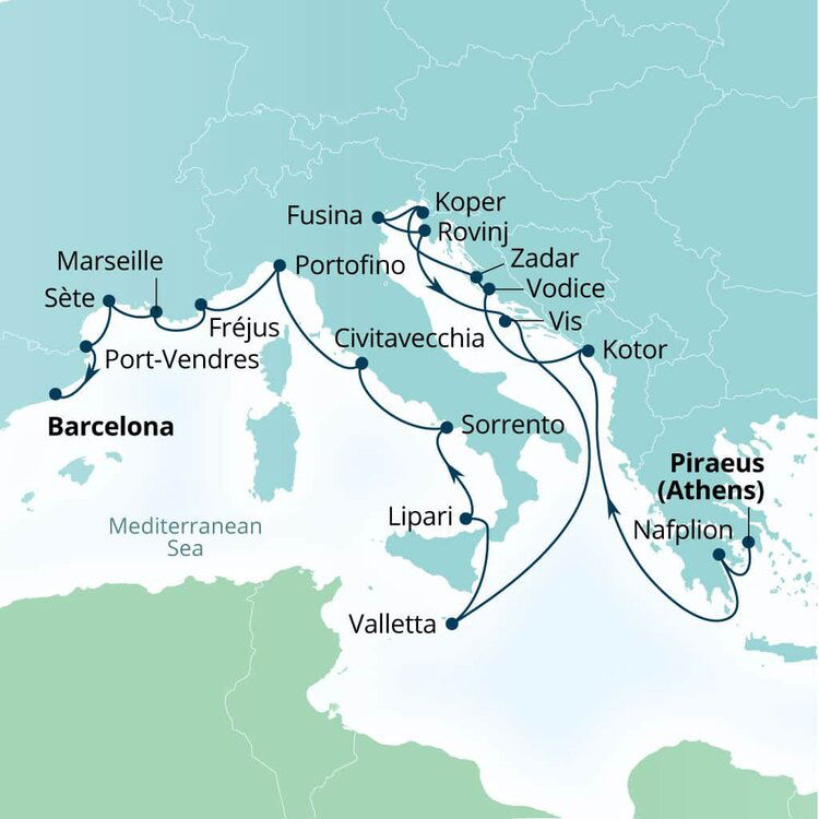Port-Vendres, located on the picturesque Côte Vermeille near the Spanish border, is a convenient entry point for exploring the charming town of Collioure. The port itself is small but functional, offering easy access (by tender) to this historic region. From here, it's a short journey to Collioure, renowned for its vibrant Catalan culture and stunning scenery that inspired artists like Derain and Picasso.