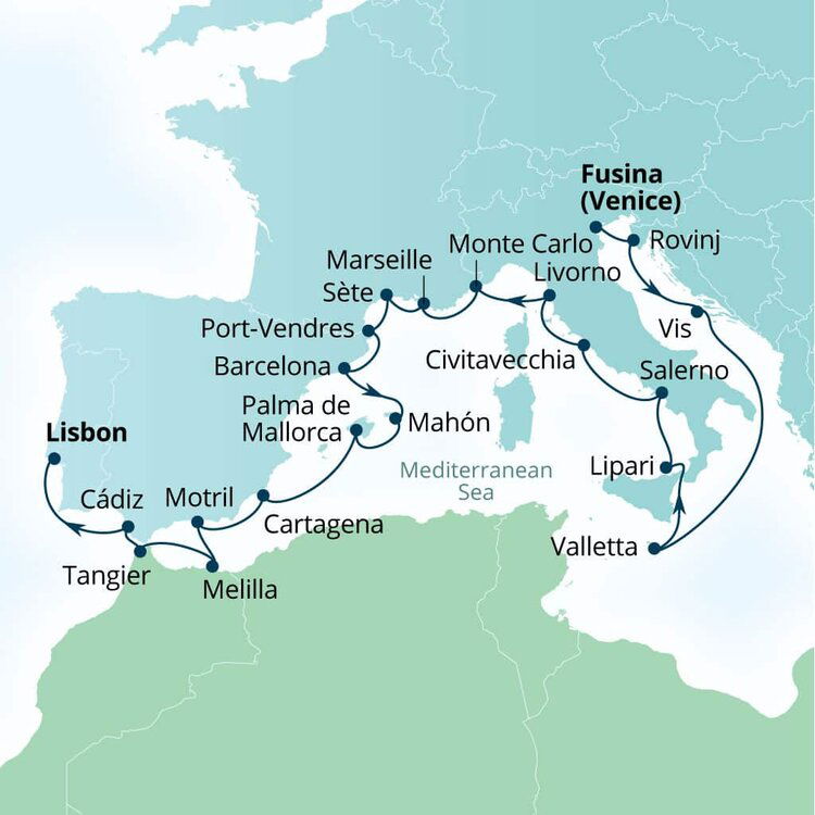 The ancient Mediterranean port of Cartagena has more then 2,500 years of history, each corner, street and square offers monumental examples of its splendorous past. Its manicured promenades lined with palm trees lead you to ancient ruins surviving marvellously between modern-day buildings. Ships will dock at the Alfonso XII Pier.