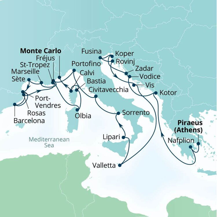 Located on the island of Corsica, Calvi is a beach town with a medieval past. Its cobbled streets climb up to an imposing Genoese Citadel which overlooks a sweeping bay of powdered white sand fringed by maritime pine trees. Ships will anchor offshore and tenders will be proved to Quai Landry.