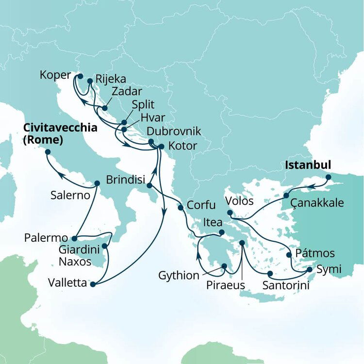 Once the seat of two massive empires, Istanbul has been shaped by its colourful history. From massive Byzantine churches, to towering Ottoman mosques, history can be found in each building no matter what part of the city you wander through. Ships will dock at the Galataport cruise ship terminal which is a 40 minute drive from the Istanbul Airport.