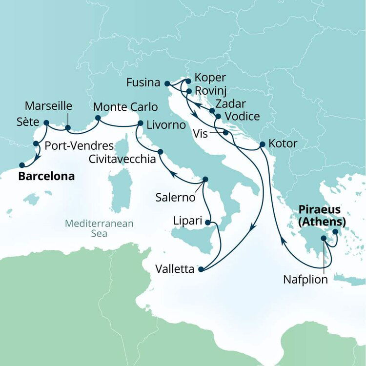 Welcome to the ancient city of Athens, the 'Cradle of Western Civilisation'. If your schedule is tight, savor traditional Greek coffee at a café with a view of the city's iconic ruins, soaking in the historic ambiance before your cruise departs. If you've got time to explore the Acropolis stands as a must-see, a UNESCO World Heritage site, adorned with iconic structures like the Parthenon and nearby Temple of Olympian Zeus. The nearby Acropolis Museum showcases stunning artifacts from ancient Greece, providing deeper insight into the city's heritage.