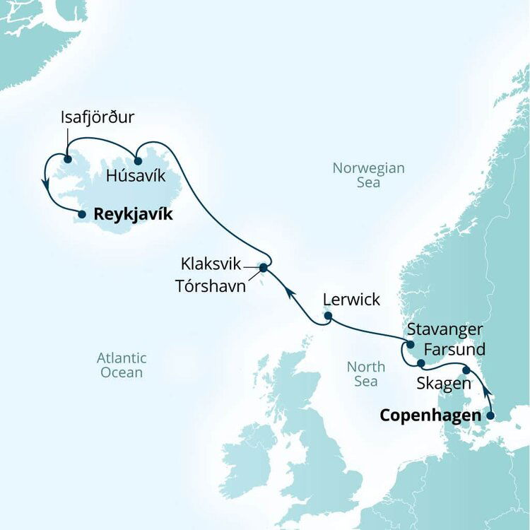 Tucked away on the northern coast of Iceland along the picturesque shores of Skjálfandi Bay is Husavik, a small fishing community that has garnered a well-deserved reputation as one of the best whale-watching destinations in the world. Ships will anchor offshore and tenders will be provided to the shore.