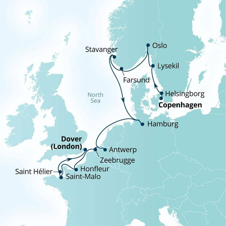 Known as the 'Gateway to England', the southeastern town of Dover is the main transit port between the two sides of the English Channel. This quaint and uniquely British town is famous for its impressive white cliffs, which have inspired many a poet and playwright. Ships will dock at the Dover Cruise Terminal.