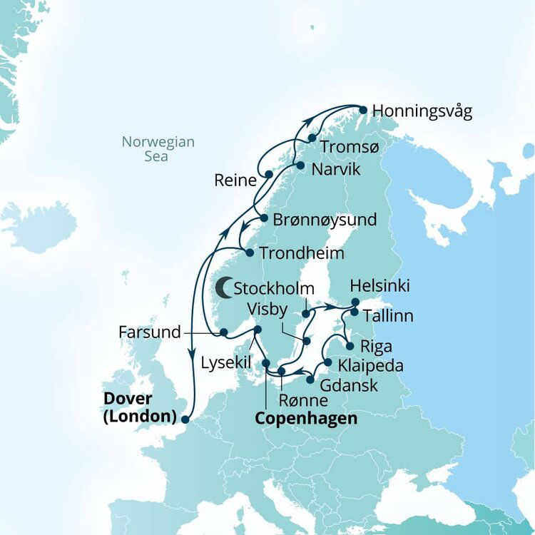 Known as the 'Gateway to England', the southeastern town of Dover is the main transit port between the two sides of the English Channel. This quaint and uniquely British town is famous for its impressive white cliffs, which have inspired many a poet and playwright. Ships will dock at the Dover Cruise Terminal.