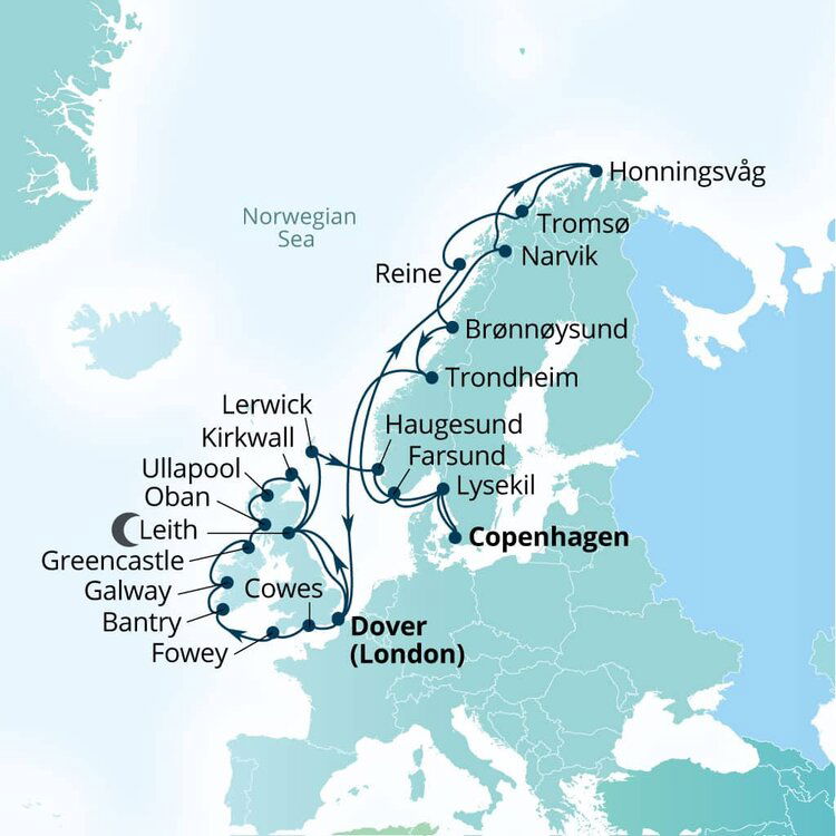 The world’s northernmost village, Honningsvag is the gateway to the North Cape. It is a completely modern fishing harbour set in a land of forests, fjord waters, and crashing waterfalls. The cliffs of the North Cape are perched 1,000 feet above the Arctic Ocean and provides a lookout over a limitless panorama.