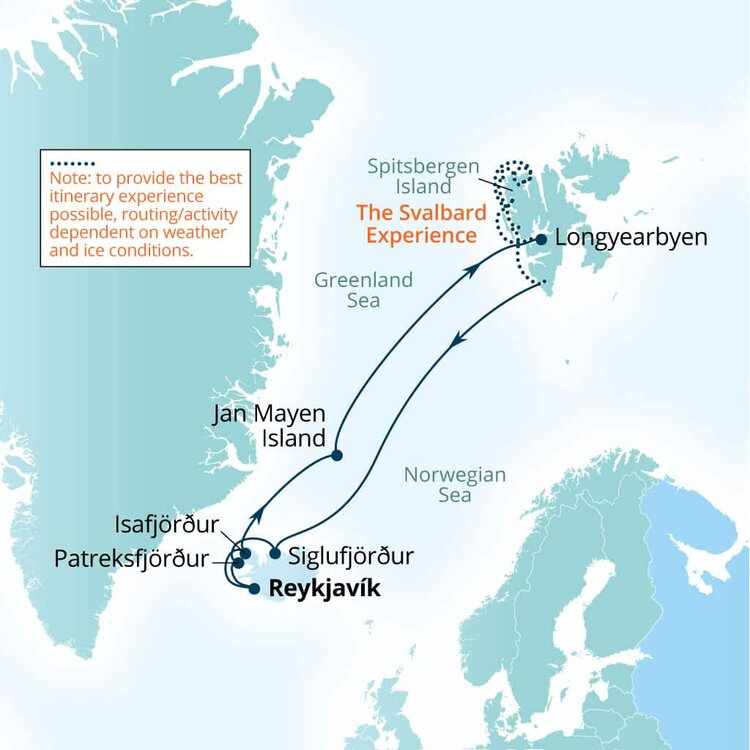 With permission from the Norwegian authorities, a landing is possible at this rarely visited outpost. Visitors may walk to the research and weather station, or beyond, for birds-eye views of the meteorological station and the long black sandy eastern shore of the island.