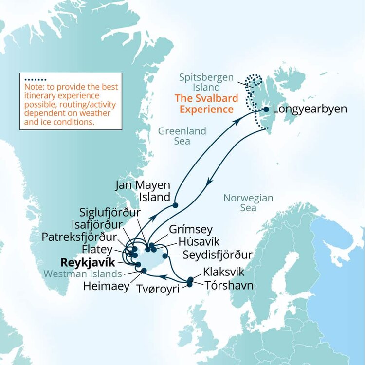 With permission from the Norwegian authorities, a landing is possible at this rarely visited outpost. Visitors may walk to the research and weather station, or beyond, for birds-eye views of the meteorological station and the long black sandy eastern shore of the island.
