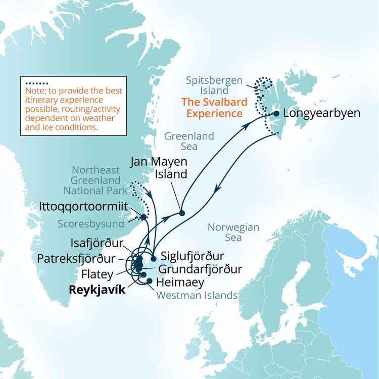 Throughout this region there are several walrus haul-outs, spectacular glaciers, bird cliffs and bird islands, as well as surprising flora in Arctic deserts and the possibility to see polar bears.