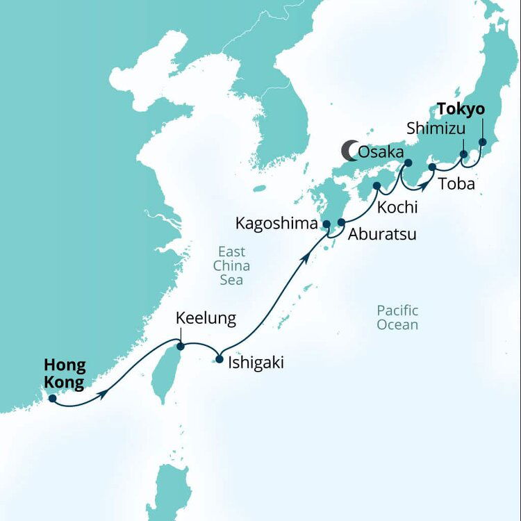 Osaka's Tempozan Cruise Terminal is located about 15 km (9 miles) from Osaka city center, a 30-minute drive. Kyoto is roughly 60 km (37 miles) away.