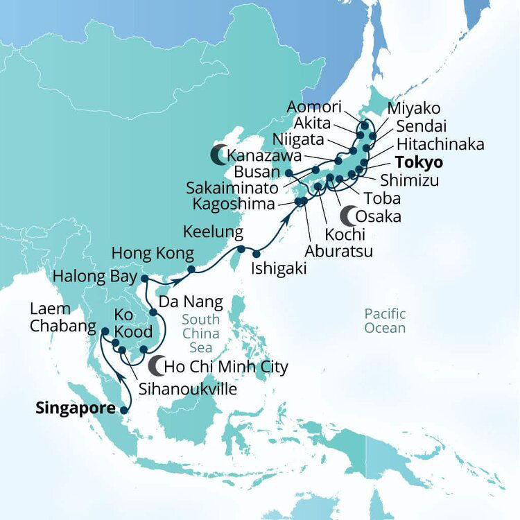 Honshu's northernmost city is full of picturesque historic temples, museums, and close to incredible nature like Mt. Hakkoda. In the spring and summer, Aomori bursts to life with cherry blossom festivals and the fiery Nebuta Festival every August. Ships dock at the Shin-Chuo wharf.