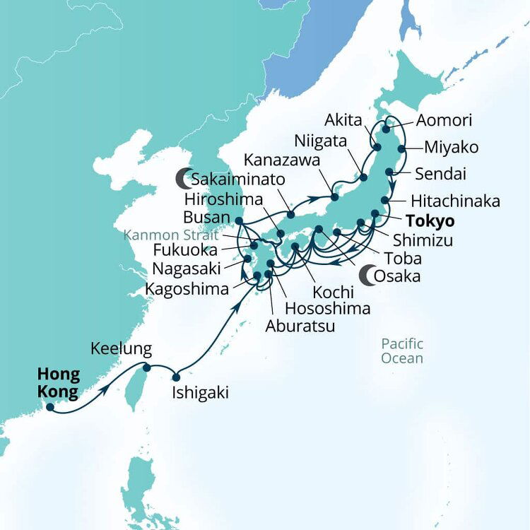 Known for its ancient temples and beautiful beaches, Fukuoka is the capital of and gateway to Kyushu Island. Boasting Japan’s heady cocktail of hot springs, gourmet food, abundant nature and spiritual history, Kyushu Island has all the advantages of the mainland, while enjoying its own identity. Ships will dock at Hakata Port.