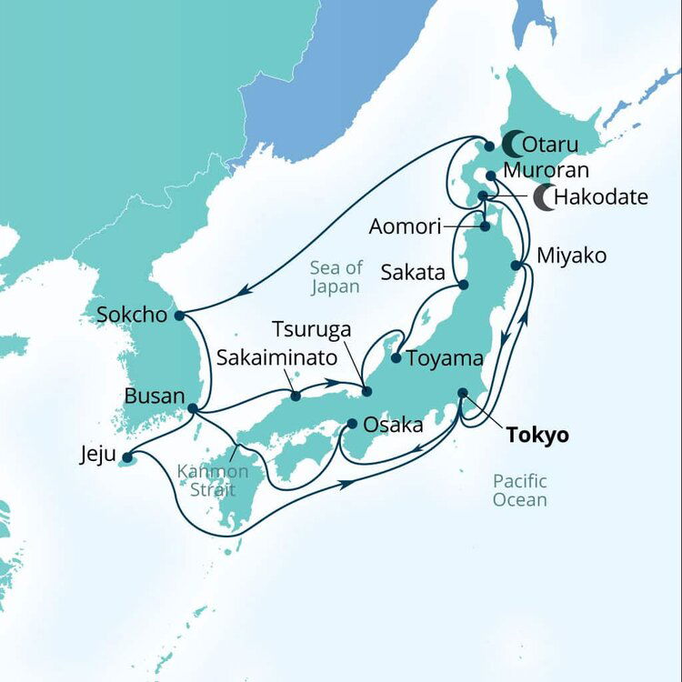 Honshu's northernmost city is full of picturesque historic temples, museums, and close to incredible nature like Mt. Hakkoda. In the spring and summer, Aomori bursts to life with cherry blossom festivals and the fiery Nebuta Festival every August. Ships dock at the Shin-Chuo wharf.
