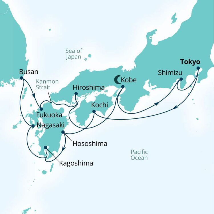 Known for its ancient temples and beautiful beaches, Fukuoka is the capital of and gateway to Kyushu Island. Boasting Japan’s heady cocktail of hot springs, gourmet food, abundant nature and spiritual history, Kyushu Island has all the advantages of the mainland, while enjoying its own identity. Ships will dock at Hakata Port.
