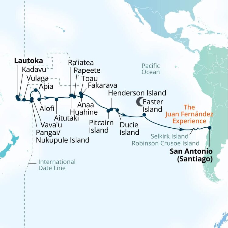 The island is famous for its mysterious, monumental statues, called moai, created by the Rapanui people. A total of 887 monolithic stone statues have been inventoried. The native islanders who carved them used only stone hand chisels, mainly basalt toki, which still lay in place throughout the island. Ships will anchor offshore and tenders will be provided to the shore.