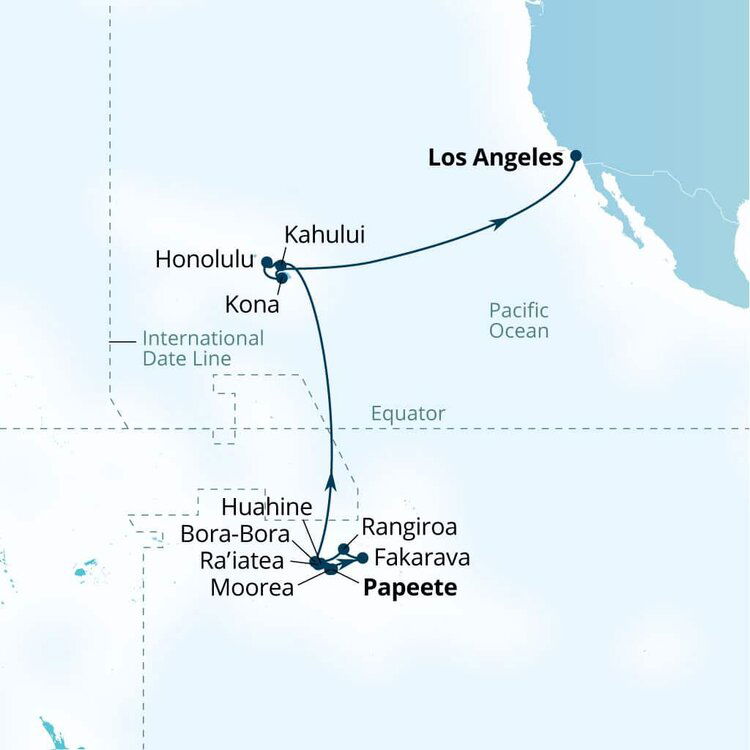 The island's unique geography makes Moorea one of French Polynesia's most breathtaking islands. Eight mountain peaks carpeted in lush vegetation rise from a translucent lagoon and two tranquil bays. Ships will anchor offshore and tenders will be provided to the shore.