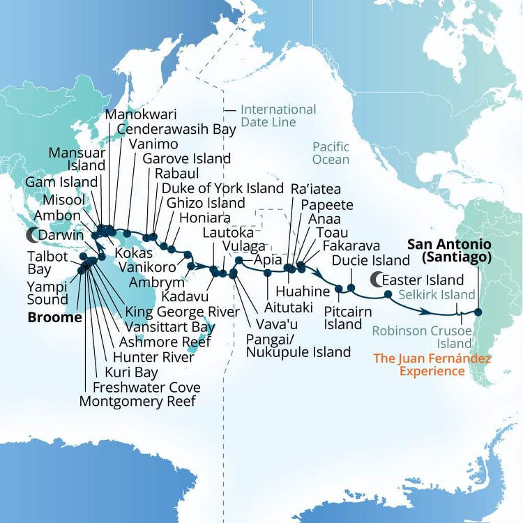 The island is famous for its mysterious, monumental statues, called moai, created by the Rapanui people. A total of 887 monolithic stone statues have been inventoried. The native islanders who carved them used only stone hand chisels, mainly basalt toki, which still lay in place throughout the island. Ships will anchor offshore and tenders will be provided to the shore.