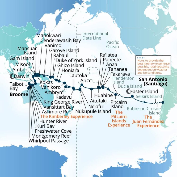 The island is famous for its mysterious, monumental statues, called moai, created by the Rapanui people. A total of 887 monolithic stone statues have been inventoried. The native islanders who carved them used only stone hand chisels, mainly basalt toki, which still lay in place throughout the island. Ships will anchor offshore and tenders will be provided to the shore.