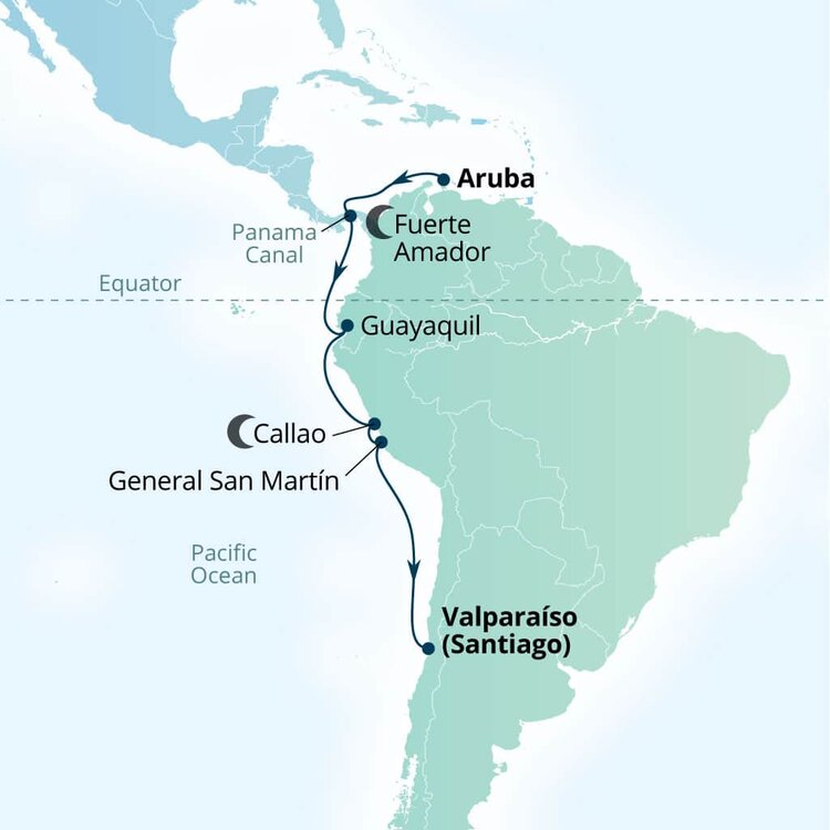 Guayaquil is the largest and most populous city in Ecuador as well as the commercial centre. Culture is alive in this bustling port, complete with hillsides dotted with colourful favelas, neoclassical architecture, world-renowned museums, and an electric nightlife. Ships will dock at this port.