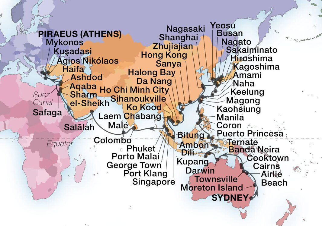 Hong Kong’s Ocean Terminal port has become a tourist hotspot featuring world-class hotels, restaurants and shopping, and the Kik Tak Cruise Terminal is a newer port located in Victoria Harbor. When it’s time to sightsee, both ports have nearby train transportation and plenty of taxis available.