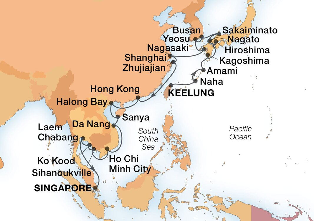 In Keelung, cruise ships dock at the Keelung Port, which serves as the gateway to Taipei, located approximately 25 kilometers (15.5 miles) away. Travel time to Taipei can vary, but it generally takes about 30 to 45 minutes by car, depending on traffic.
