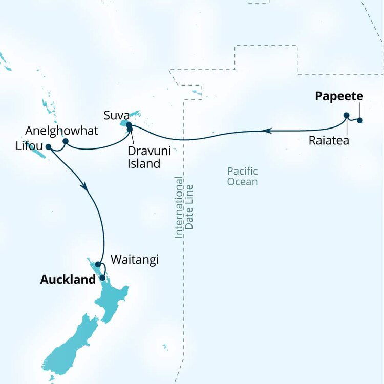 The Bay of Islands, a stunning archipelago encompassing 144 islands and including the boutique towns of Opua, Paihia, Russell and Kerikeri, is famed for its turquoise waters and rich Māori history. Take a boat tour to explore the iconic Hole in the Rock or spot dolphins. Visit Russell, a picturesque town with colonial history, or the Waitangi Treaty Grounds, where New Zealand’s founding document was signed. Your ship will anchor in the bay, just off Russell, and you'll tender ashore.