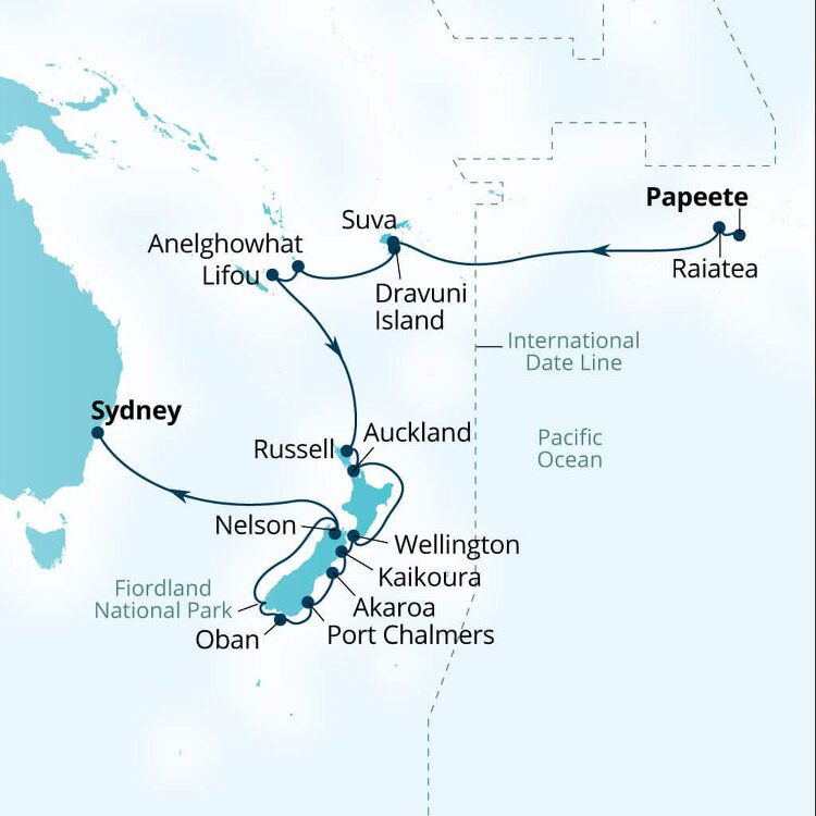 Oban, located in Halfmoon Bay is a tranquil village known for its stunning natural beauty and wildlife. As the only settlement on Stewart Island, Oban offers a peaceful escape surrounded by lush forests and pristine beaches. Your ship will anchor in the bay and you'll be tendered ashore. The town center is just a short walk from the tender dock. The island is renowned for its wildlife and natural beauty, with highlights such as Ulva Island bird sanctuary, coastal hiking trails, and opportunities for bird watching, particularly the native Kiwi.