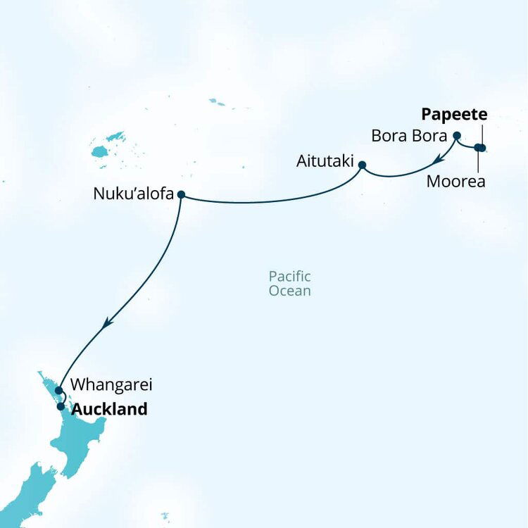 The island's unique geography makes Moorea one of French Polynesia's most breathtaking islands. Eight mountain peaks carpeted in lush vegetation rise from a translucent lagoon and two tranquil bays. Ships will anchor offshore and tenders will be provided to the shore.