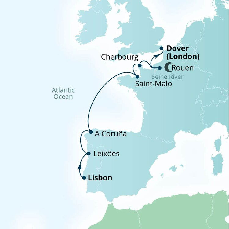 Known as the 'Gateway to England', the southeastern town of Dover is the main transit port between the two sides of the English Channel. This quaint and uniquely British town is famous for its impressive white cliffs, which have inspired many a poet and playwright. Ships will dock at the Dover Cruise Terminal.
